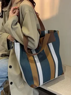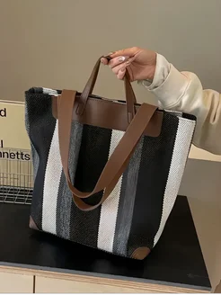 Сумка шоппер через плечо большая на молнии в полоску