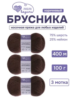Пряжа для вязания носочная Брусника 100г 400м 3шт