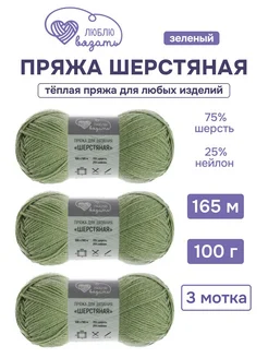 Пряжа для вязания Шерстяная, 100 г, 165 м, 3 шт