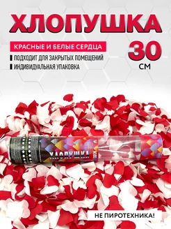 Хлопушка на свадьбу 30 см красные сердца из фольги