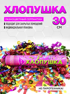 Пневмохлопушка 30 см длинные разноцветные ленты из фольги