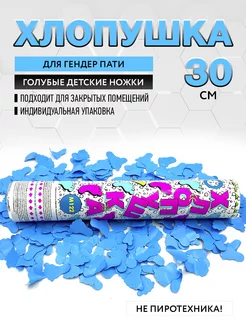 Праздничная хлопушка 30 см для гендер пати голубые стопы