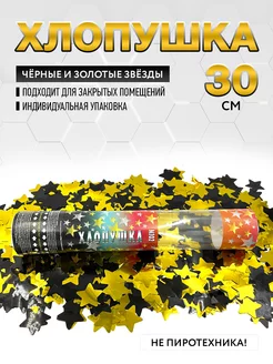 Хлопушка пневматическая 30 см золотые черные звезды фольга