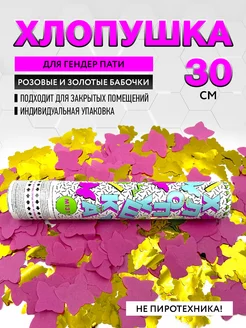 Пневмохлопушка для гендер пати розовые золотые бабочки