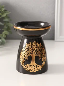 Аромалампа Древо жизни, керамика, чёрная с золотом