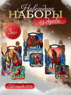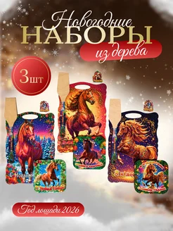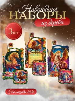 Новогодние наборы ДОСОК из дерева 3 в 1