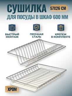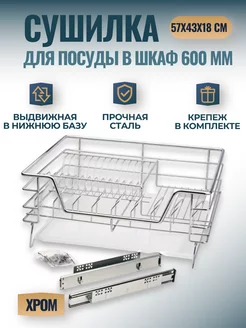 Сушилка для посуды в шкаф 60 см, посудосушитель хром