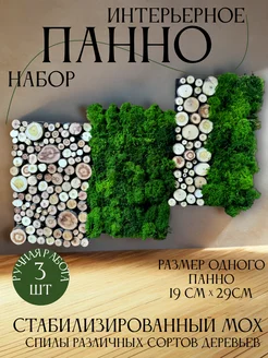 Панно из дерева и мха настенное декоративное набор 3 шт