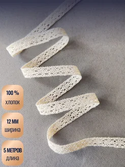 Кружево хлопковое для рукоделия, 1,2 см, 5 метров