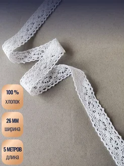 Кружево хлопковое для рукоделия, 2,6 см, 5 метров