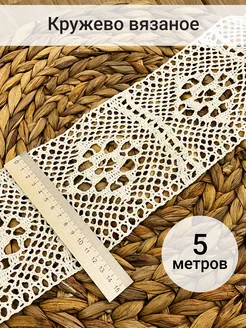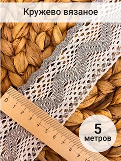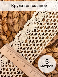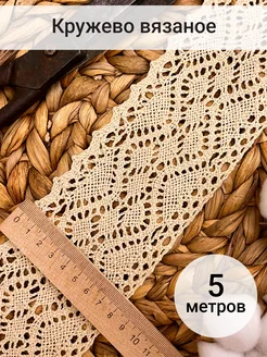 Кружево хлопок вязаное для шитья и рукоделия 75мм 5м бежевое