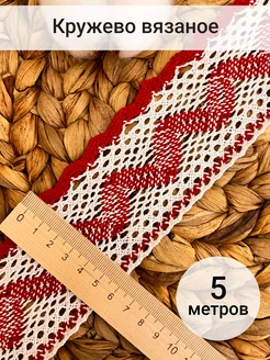 Кружево вязаное хлопковое 60мм 5м белое с красным
