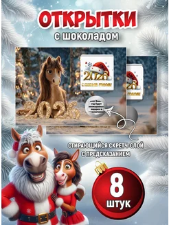 Шоколадные мини-открытки с Новогодними Лошадьми 2026 8 штук