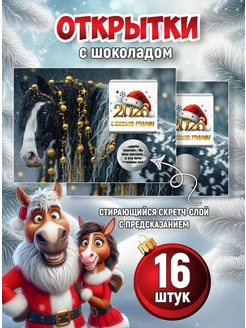 Шоколадные мини-открытки с Новогодними Лошадьми 2026 16 шт