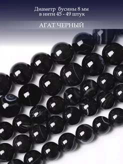 Агат натуральный чёрный 8 мм бусины (45-49 штук)