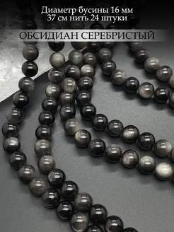Обсидиан серебристый натуральный бусина 16 мм (24 штук)