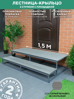 Крыльцо для дома 2 ступени железное, готовое, из ДПК