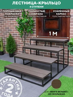Крыльцо для дома 4 ступени уличное, металлическое, из ДПК