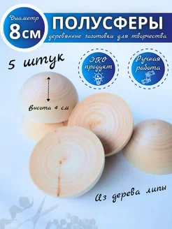 Заготовка для творчества полусфера деревянная D=8см, 5 штук