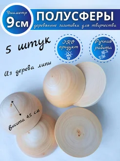 Заготовка для творчества полусфера деревянная D=9см, 5 штук