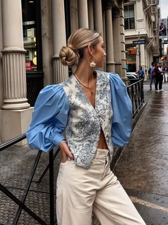 Рубашка на завязках с рукавом фонарик в стиле бохо