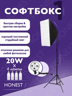 Софтбокс с пультом и лампой 150w LED для фото и видео студии