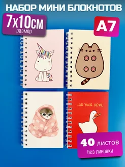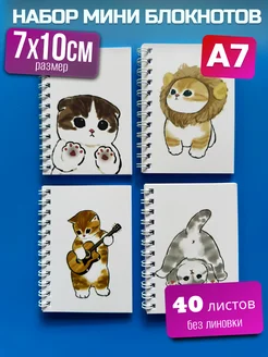 Набор блокнотов мини с котиками и зверятами А7, 4 шт