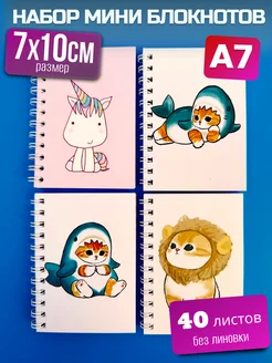 Набор блокнотов для девочек Кот Акула а7, 4 шт