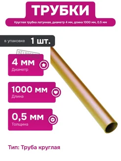 Трубка латунная 4x0,5х1000 мм для моделирования и декора