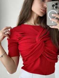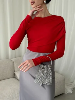 Нарядный лонгслив с драпировкой вечерний облегающий