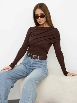Облегающий лонгслив кофта нарядный с драпировкой топ