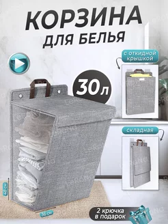 Корзина для белья складная с крышкой узкая в ванную 50л