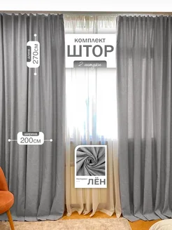 Шторы из льна 200х270см 2 шт стильные в спальню