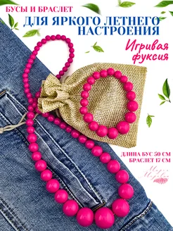 Бусы и браслет Фуксия Розовая
