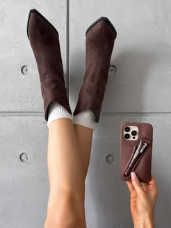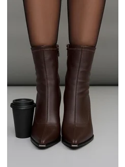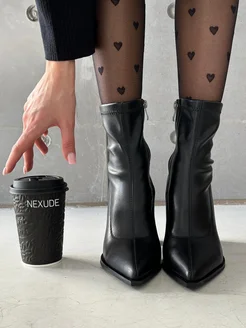 Ботильоны демисезонные замшевые на каблуке с острым носом