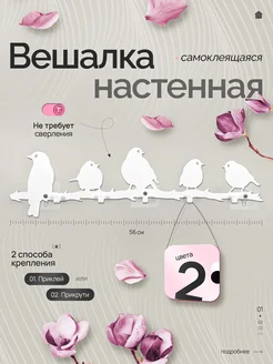 Вешалка настенная для прихожей металлическая "Птицы"