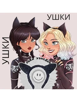 Ободок Ушки вэнсдей чёрные пушистые меховые