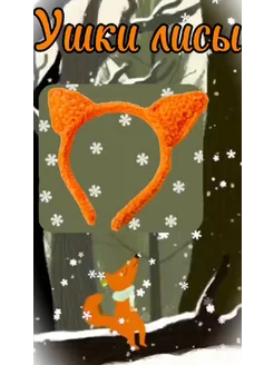 Ободок с рыжими ушками, беличьи ушки мягкие пушистые