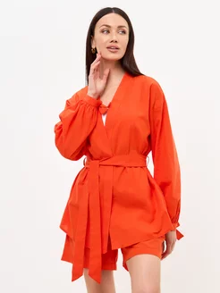 Женский костюм кимоно из льна с шортами