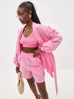 Костюм льняной с шортами и рубашкой кимоно