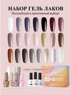 Набор гель-лаков для ногтей 19шт 16 цветов + база + 2 топ