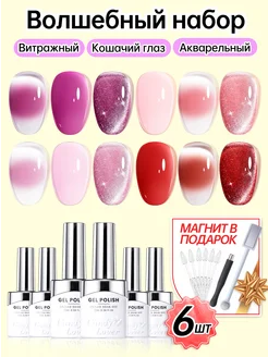 Гель лаки кошачий глаз, витражный, акварельный гель лак 6шт