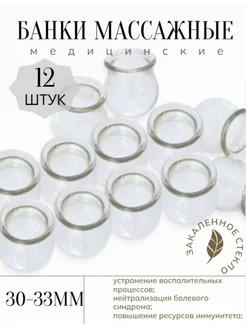 Стеклянная банка медицинская для массажа 30-33 мм,12 шт