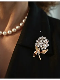 Большая брошь женская ветка с жемчугом и стразами в подарок