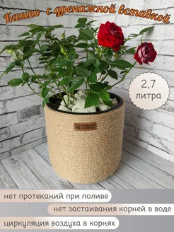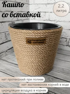 Кашпо из джута 5 л, со вставкой, ручная работа