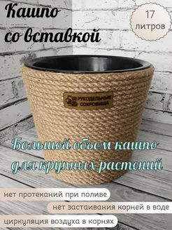 Кашпо из джута 17 л, со вставкой, ручная работа