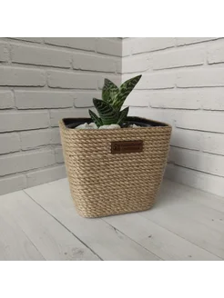 Квадратное кашпо для цветов из джута 1.5л, дренажная вставка