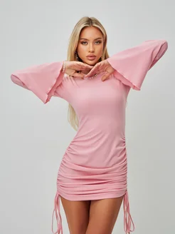 Короткое платье с завязками и расклешенными рукавами