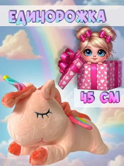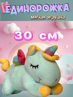 Мягкая игрушка единорог 30 см радужный мятный спящий