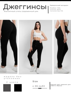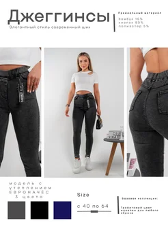 Джеггинсы с евроначёсом скини с высокой посадкой зауженные